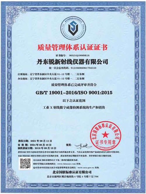 質(zhì)量管理體系認證證書